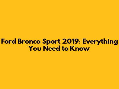 Bronco Sport 2019: Repair, Specs & More