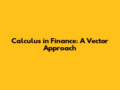 Calculus In Finance: A Vector Approach