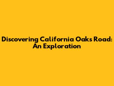 Discovering California Oaks Road: An Exploration
