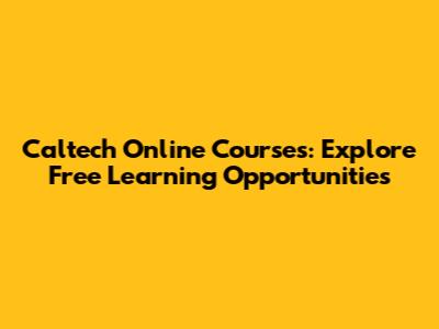 Caltech Online Courses: Explore Free Learning Opportunities