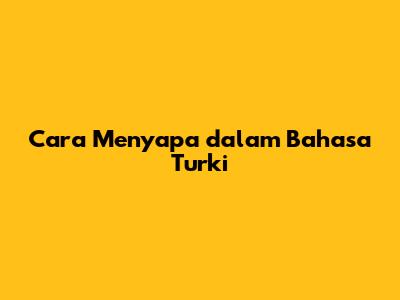 Cara Menyapa Dalam Bahasa Turki