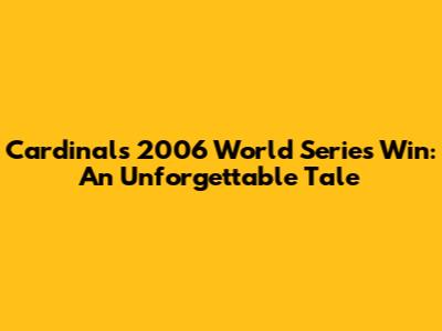 Cardinals' 2006 World Series Win: An Unforgettable Tale