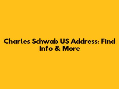 Charles Schwab US Address: Find Info & More
