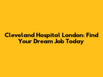 Cleveland Hospital London: Find Your Dream Job Today
