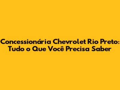 Concessionária Chevrolet Rio Preto: Seu Guia Completo