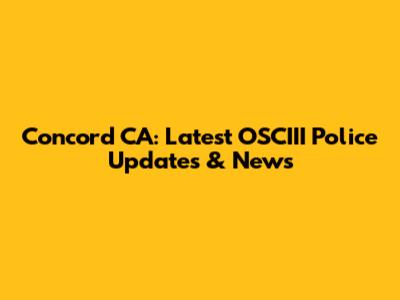 Concord CA: Latest OSCIII Police Updates & News
