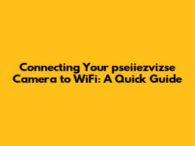 Connecting Your Pseiiezvizse Camera To WiFi: A Quick Guide