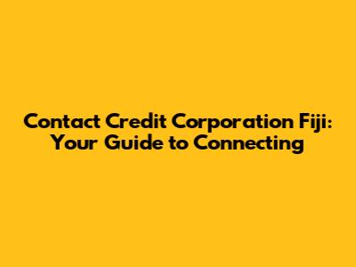 Contact Credit Corporation Fiji: Your Guide To Connecting