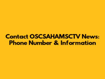 Contact OSCSAHAMSCTV News: Phone Number & Information