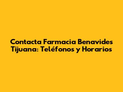 Contacta Farmacia Benavides Tijuana: Teléfonos Y Horarios