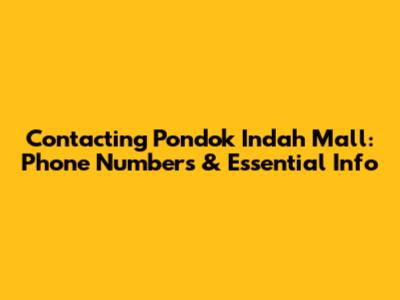 Contacting Pondok Indah Mall: Phone Numbers & Essential Info
