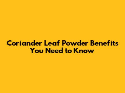 Coriander Leaf Powder Benefits You Need To Know