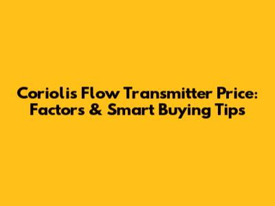 Coriolis Flow Meter Price: Factors & Smart Buying Tips