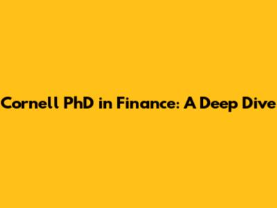 Cornell PhD In Finance: A Deep Dive