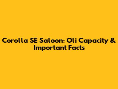 Corolla SE Saloon: Oli Capacity & Important Facts