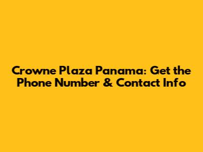 Crowne Plaza Panama: Get The Phone Number & Contact Info