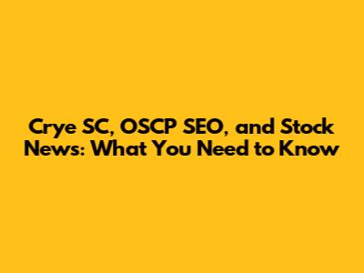Crye SC, OSCP SEO, And Stock News: What You Need To Know