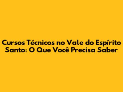 Cursos Técnicos No Vale Do Espírito Santo: O Que Você Precisa Saber