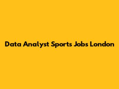 Data Analyst Sports Jobs: Your London Opportunity