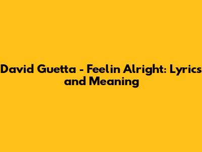 David Guetta - Feelin' Alright: Lyrics And Meaning