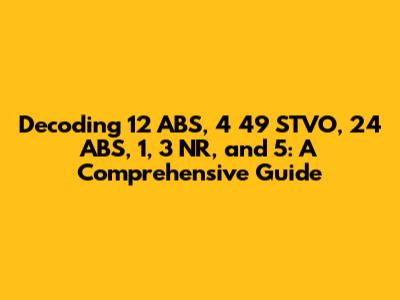 Hey guys! Ever stumble upon a string of numbers and letters like "12 ABS 4 49 STVO 24 ABS 1 3 NR 5" and scratch your head, wondering what in the world it means? Well, you're not alone! This seemingly random sequence actually holds some important information. Let's break it down, piece by piece, so you can understand what this code is all about. We'll be focusing on understanding what each part signifies, and how it all fits together. This guide is designed to be super easy to follow, even if you're not a tech whiz or an expert in the field. So, let's dive in and demystify this code together. Get ready to learn about the different components of this system and what they represent. We'll go through each element and explain its purpose, ensuring you have a solid grasp of the subject. Ready to unlock the secrets behind these seemingly cryptic numbers and letters? Let's get started!
