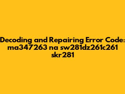 Decoding & Repairing Error Code: Ma347263 Na Sw281dz261c261 Skr281