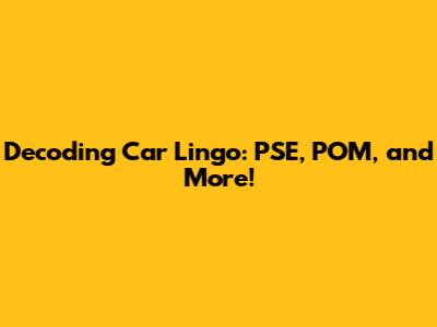 Decoding Car Lingo: PSE, POM, And More!