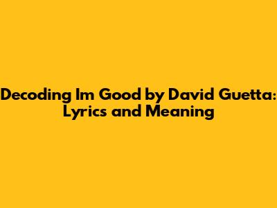 Decoding 'I'm Good' By David Guetta: Lyrics And Meaning
