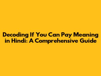 Decoding 'If You Can Pay' Meaning In Hindi: A Comprehensive Guide