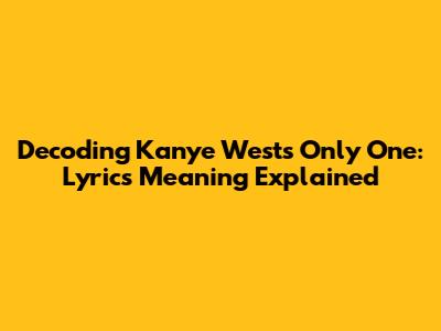 Decoding Kanye West's Only One: Lyrics Meaning Explained