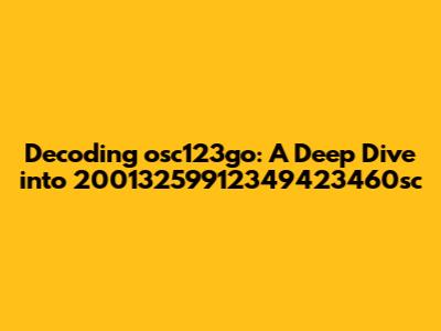 Decoding Osc123go: A Deep Dive Into 20013259912349423460sc
