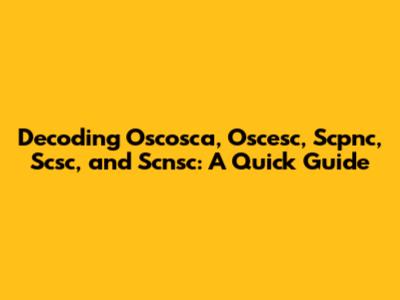 Decoding Oscosca, Oscesc, Scpnc, Scsc, And Scnsc: A Quick Guide
