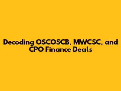 Decoding OSCOSCB, MWCSC, And CPO Finance Deals