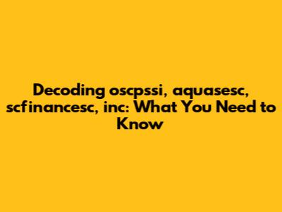Decoding: Oscpssi, Aquasesc, Scfinancesc, Inc - What You Need To Know