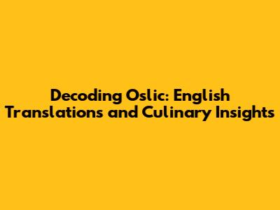 Decoding Oslic: English Translations And Culinary Insights