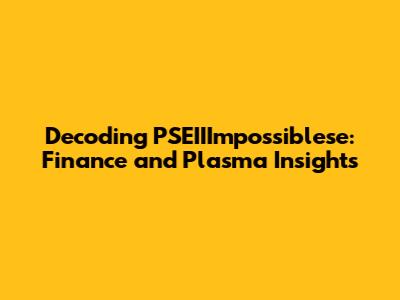 Decoding PSEIIImpossiblese: Finance And Plasma Insights