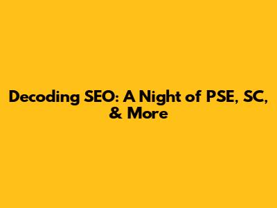 Decoding SEO: A Night Of PSE, SC, & More