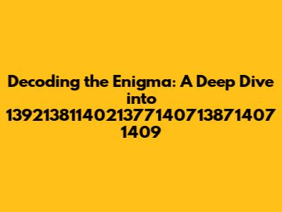 Decoding The Enigma: A Deep Dive Into 1392138114021377140713871407 1409