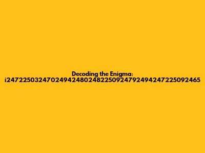 Decoding The Enigma: I247225032470249424802482250924792494247225092465