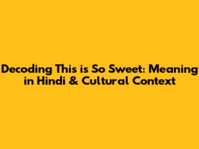 Decoding 'This Is So Sweet': Meaning In Hindi & Cultural Context