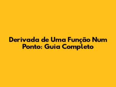 Derivada De Uma Função Num Ponto: Guia Completo