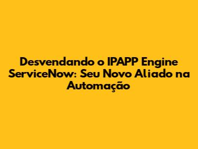 Descubra O Que É O IPAPP Engine ServiceNow