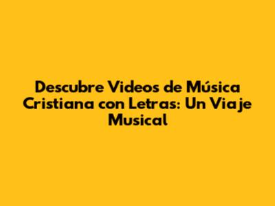 Descubre Videos De Música Cristiana Con Letras: Un Viaje Musical
