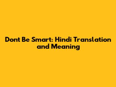 Don't Be Smart: Hindi Translation And Meaning