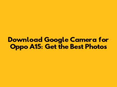 Download Google Camera For Oppo A15: Get The Best Photos
