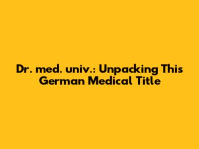 Dr. Med. Univ.: What Does This Medical Title Mean?