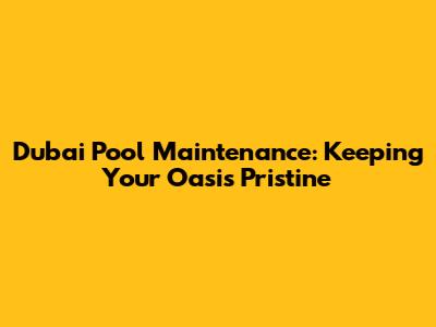 Dubai Pool Maintenance: Keeping Your Oasis Pristine