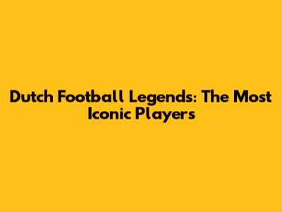 Dutch Football Legends: The Most Iconic Players