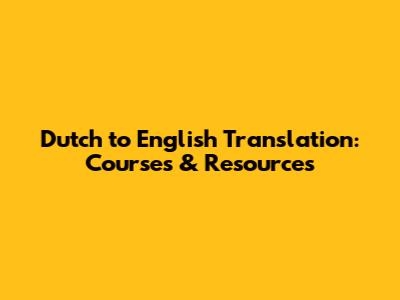 Dutch To English Translation: Courses & Resources