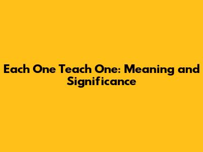 Each One Teach One: Meaning And Significance
